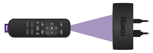 Algunos reproductores de streaming Roku vienen con un control remoto simple que usa luz infrarroja invisible (IR) para transmitir las señales al presionar los botones a corta distancia. Para que el control remoto simple funcione de forma correcta, no debe haber nada que pueda obstruir que la señal viaje desde el control hasta la superficie plana frontal del reproductor (donde aparece la luz de estado cuando está encendido).