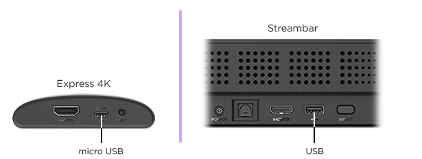 Micro-USB- und USB-Anschlüsse an kompatiblen Roku-Geräten
