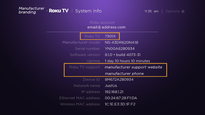 Du kannst außerdem feststellen, ob du ein Roku TV (und keinen angeschlossenen Roku Player) hast, indem du dir die Systeminformationen in den Einstellungen ansiehst.