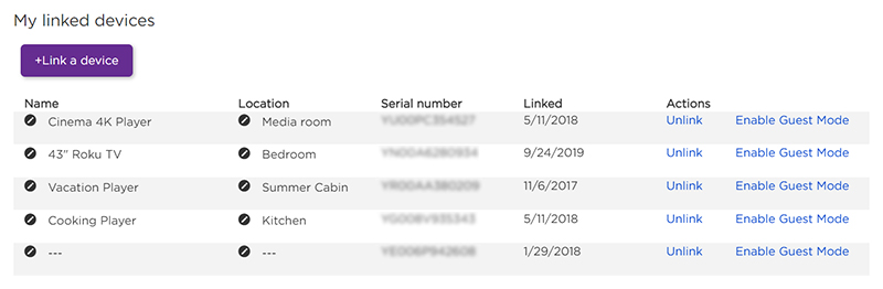Mit den folgenden Schritten kannst du den Namen oder Standort von Geräten über den Roku Account ändern.