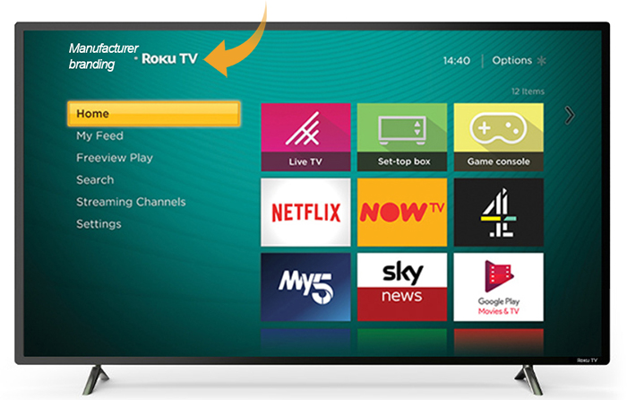 Roku works with a variety of TV manufacturers who build Roku TVs with different screen sizes, price points, and picture resolutions. Along with the branding of the manufacturer somewhere on the front of the display, you can typically also find the Roku TV logo in the corner.