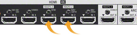 Single input – When only a single input supports HDCP 2.2, you may see a label next to just that input as seen below: