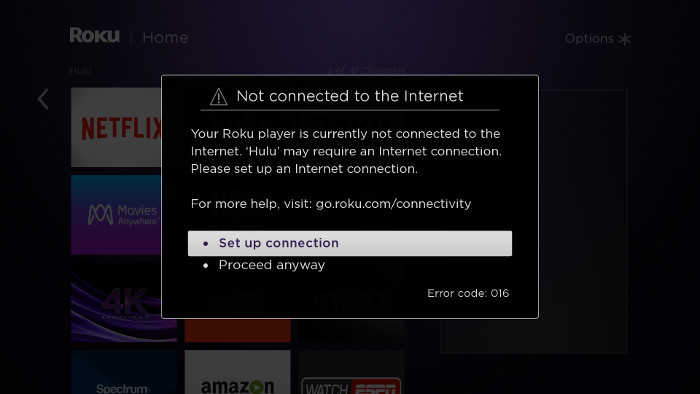 If your Roku device is unable to connect to your home router or gain access to the internet through the router, you may not be able to set up your device. In cases where the network or internet connection is lost after your device is set up; you may not be able to launch channels that require an internet connection or you may experience interruptions when streaming.