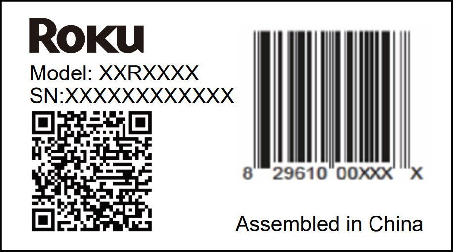 Each Roku player and Roku audio device has its serial number or device ID printed on the bottom or back of the product. On some, the information is printed onto a product label that is attached to the player or audio device. On others, the information is printed directly onto the player or audio device.