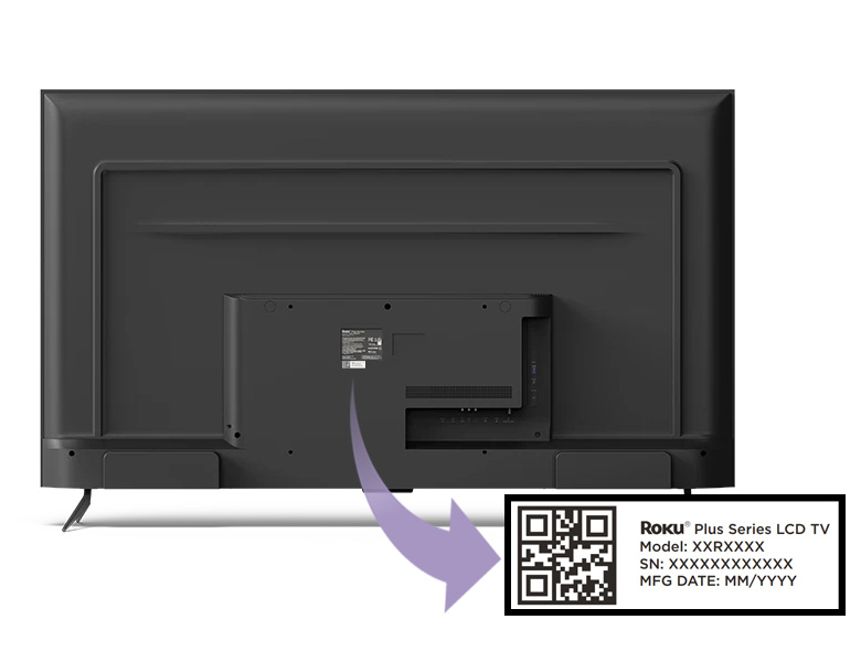 For Roku branded TVs, the serial number (SN) can be found on a white label near the center of the TV. If you cannot locate the serial number or device ID on a Roku TV made by any other manufacturer, get more help on the support website for the manufacturer of your TV.