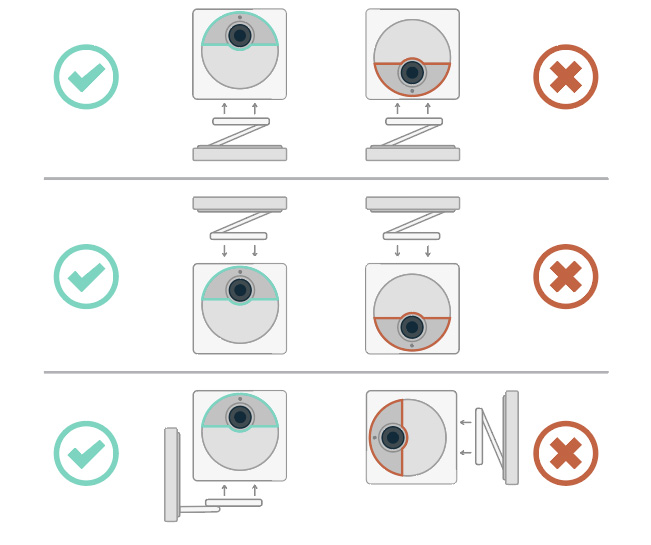 Whichever way you decide to mount your camera, the camera lens must be upright and the Sync button facing down. Your camera has a removable magnetic base, so pulling it off will not break your camera. Refer to the diagram below for the correct orientation.