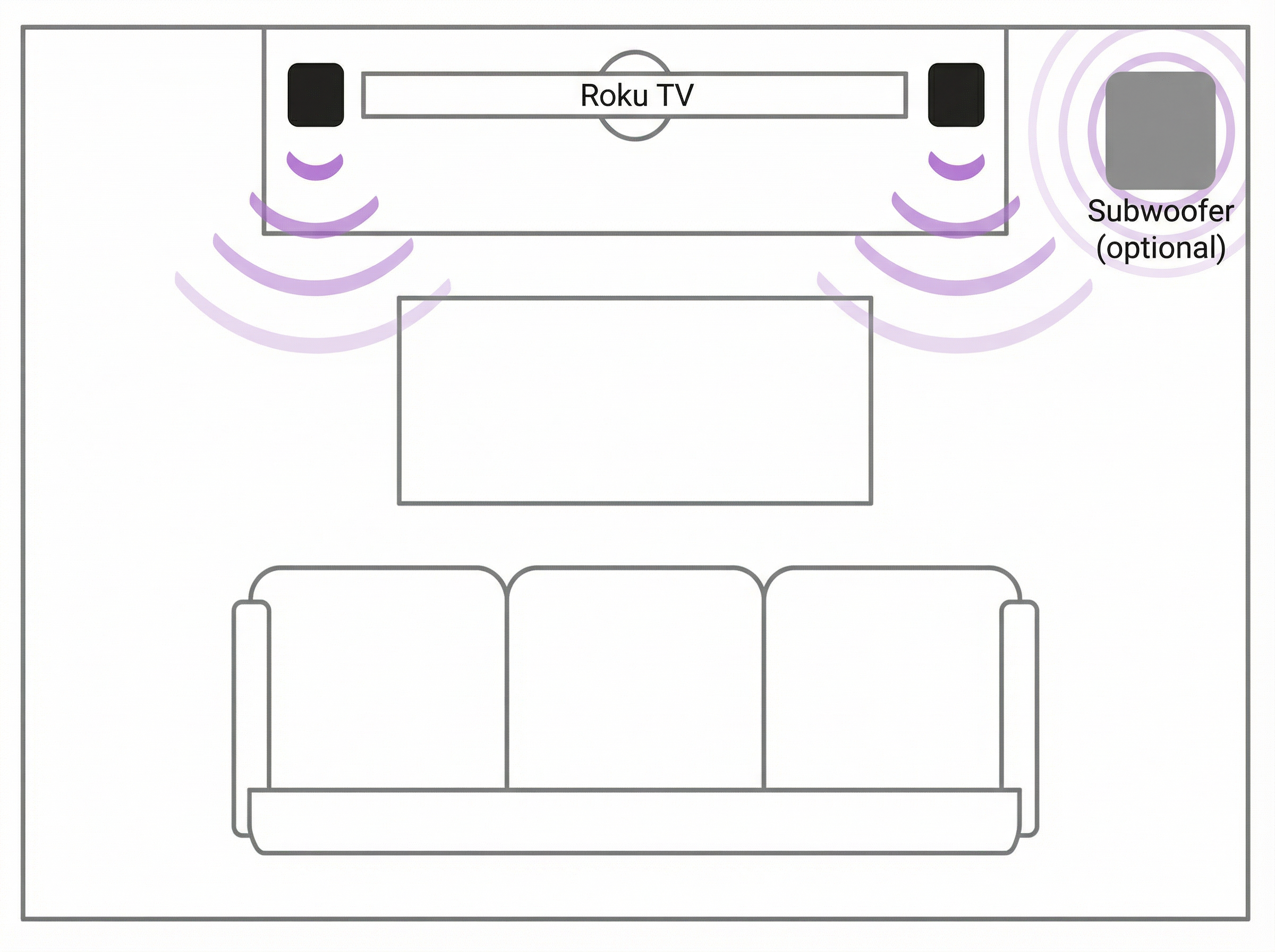 After your wireless speakers are connected to your Roku TV, you can use the guidelines below to help determine the best placement for a stereo configuration.