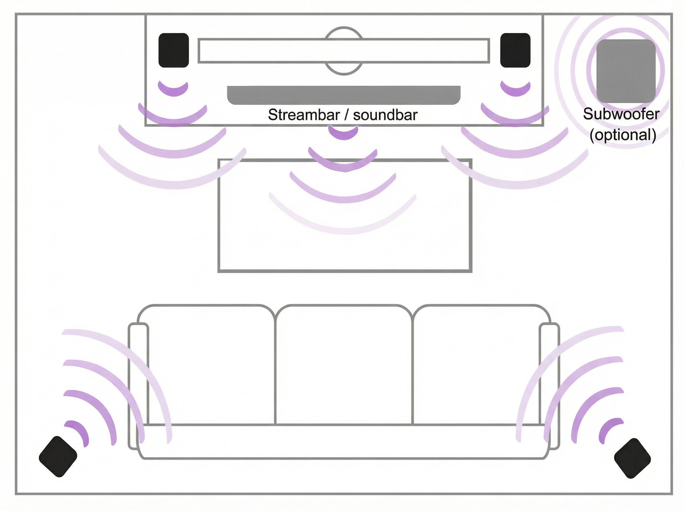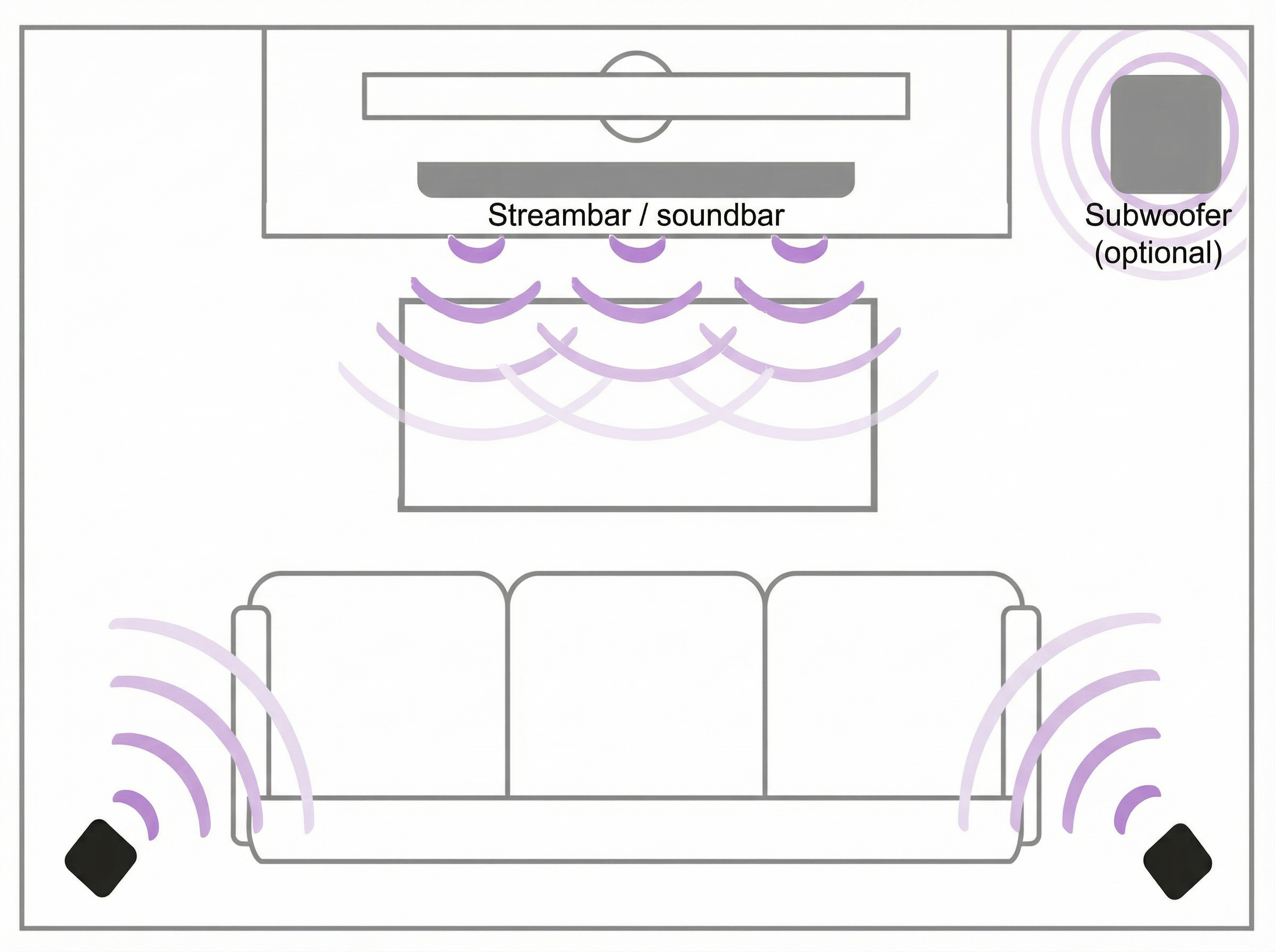 Once your Streambar or Smart Soundbar is installed, use the guidelines below for either a surround or full surround configuration.