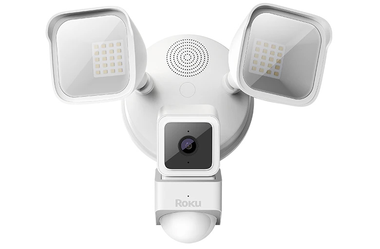 Your Roku® Floodlight Camera SE delivers a crisp, Full HD image in any light with color night vision, offers simultaneous 2-way communication, a super bright light, weatherproofing, and secure cloud storage if you purchase a Roku Smart Home Subscription. You can even trigger a loud siren when you want to scare away unwanted visitors.