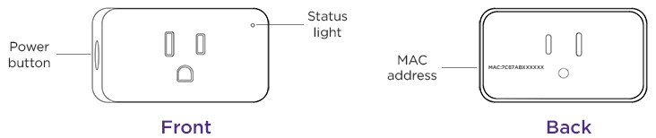 Before you begin, familiarize yourself with your smart plugs including the location of the status light. It is also important to make note of the MAC addresses which are required should you need to contact Roku Customer Support.