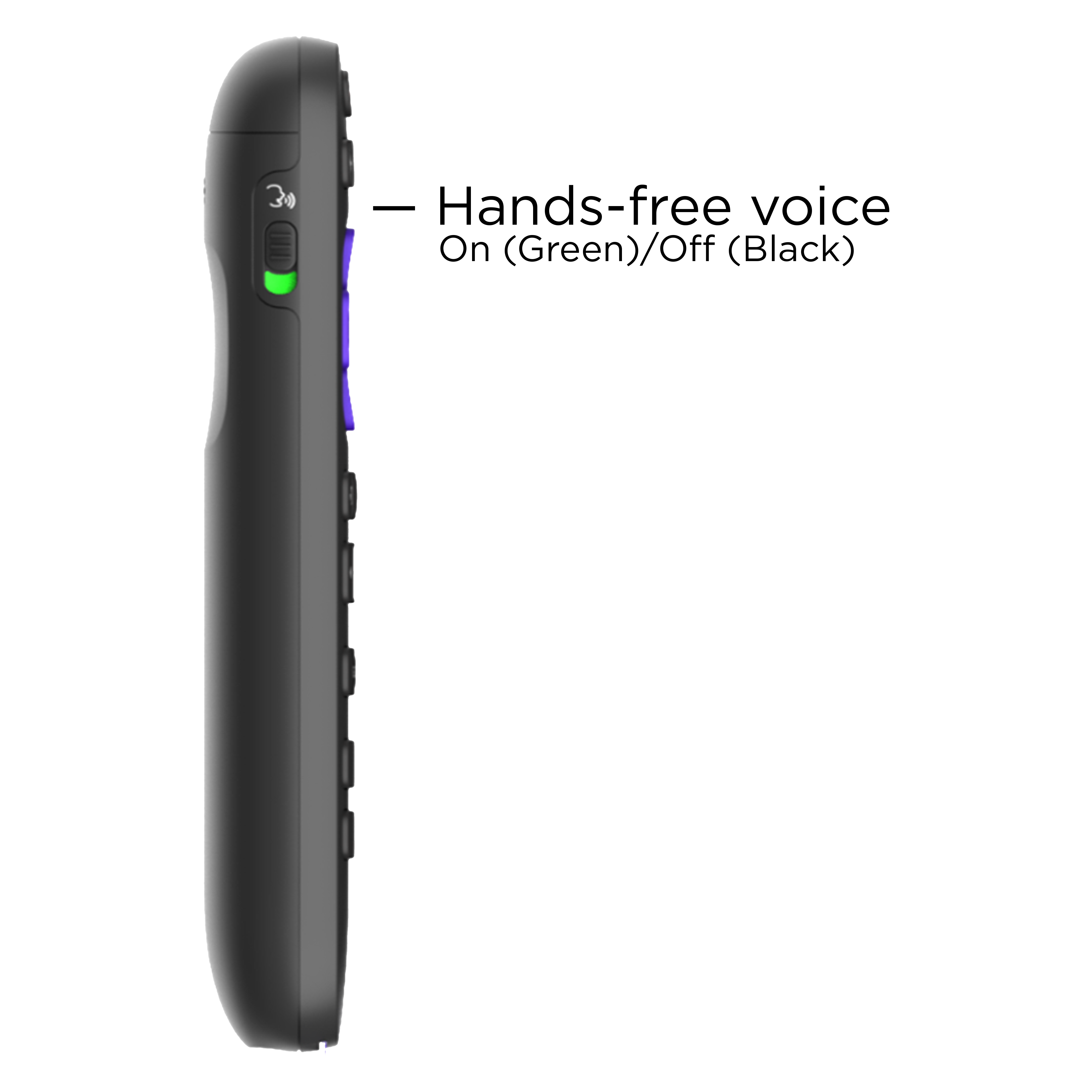 To turn on hands-free voice, simply move the slider on the side of your remote to green.