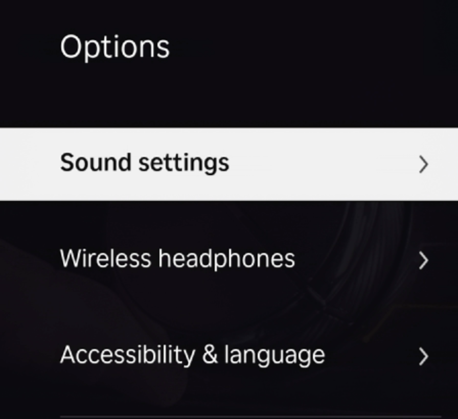 Nota: Si estás viendo contenido desde un dispositivo externo conectado a la TV, no puedes ajustar la configuración de audio durante la reproducción. Sigue los pasos que aparecen en la próxima sección para ajustar la configuración de audio desde el menú de Configuración.