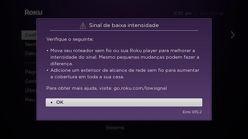 Se seu player de streaming Roku detectar baixa intensidade de sinal, você verá uma mensagem na tela: